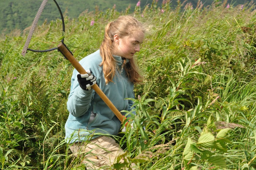 - Larissa Fitzhugh: I am 13 years old and going into 8th grade. My dad, Ben Fitzhugh, has been coming up to Old Harbor for years, but this is my first time in Alaska. The last time I was in the field with him was in the Kuril Islands, Russia, when I was 3, so this is my first time helping out on a dig. I’m excited to get to learn more about archaeology and what my dad does when he’s in the field.